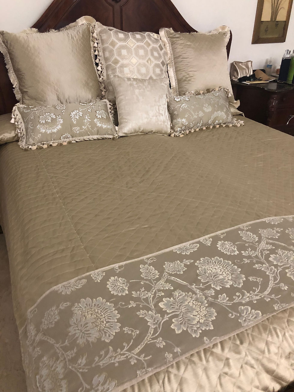 Bespoke bed linen, throws, cushions, fillers, table cloths, napkins, mats and runners are a part of our product range. Selecting these while doing your windows helps create a comprehensive and special look for your space. We specialise in mixing fabrics, different types of embroideries, cushion fillers, fancy fringes and monogramming.